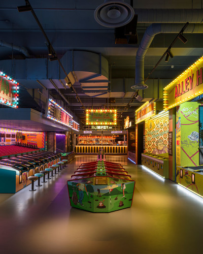 Completely bespoke, our anti-slip ForumSphere poured resin flows through this dynamic space, whilst in the washrooms a custom designed artsphere poured resin floor creates a unique and vibrant surface with enhanced grip.