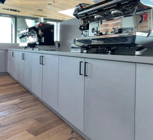 Our joinery mineral coatings were applied to the bar, seating and kitchen area creating a unified and aesthetically pleasing look throuhgout the entire room.