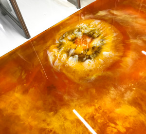 For the sunset inspired floor, we used a unique blend of orange's, red's, yellow's and golden coloured pigments which were then poured and blended by hand to provide the desired finish.