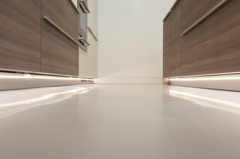 Your kitchen is also an integral part of your home, and it’s important that you feel comfortable in this environment. Our poured resin floors are warm and soft underfoot, suitable with underfloor heating but perfectly comfortable without. Because of the natural biopolymers in our resin, a Sphere8 kitchen floor has a natural elasticity, making it not only durable but comfortable – unlike the hard, unforgiving surfaces of polished concrete or epoxy resin.
