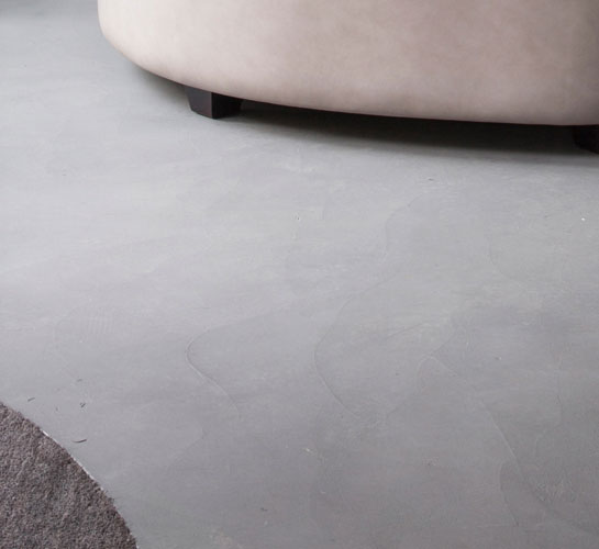 A thin section liquid mineral surface created to emulate concrete walls and floors.