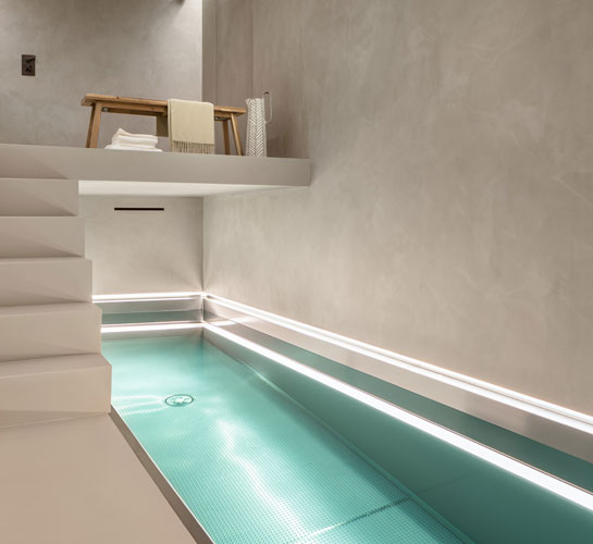 Completely waterproof, this mineral skin contains a unique hybrid resin allowing it to outperform all known microcement surfaces. Available in a carefully curated range of colours, slip resistances and gloss levels.