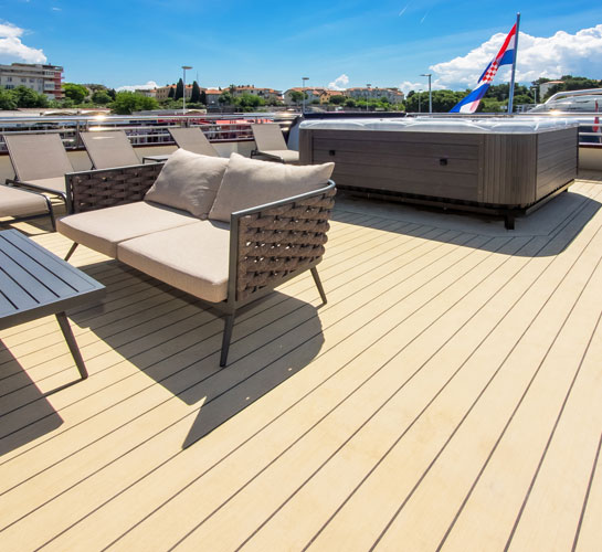 Our TeakSphere system is water-resistant and completely impervious, making it resistant to warping and buckling in a way that traditional wooden floors are not.